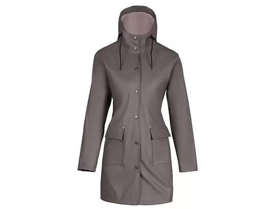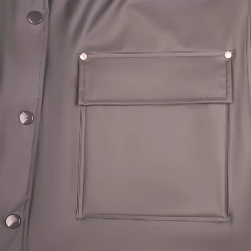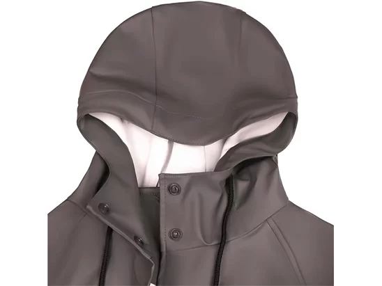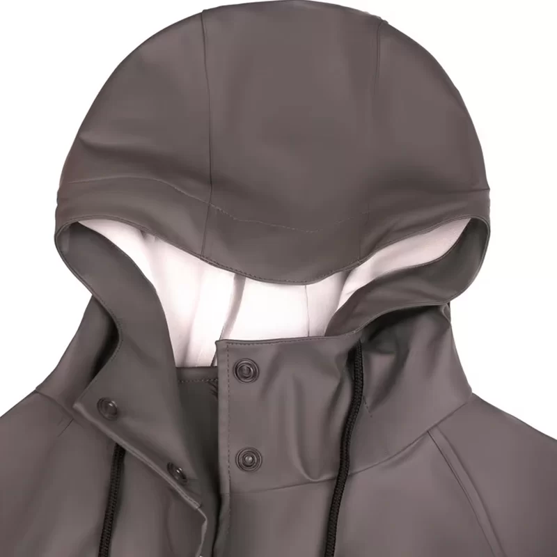 Stil: Mørkegrå PU regnfrakk for kvinner